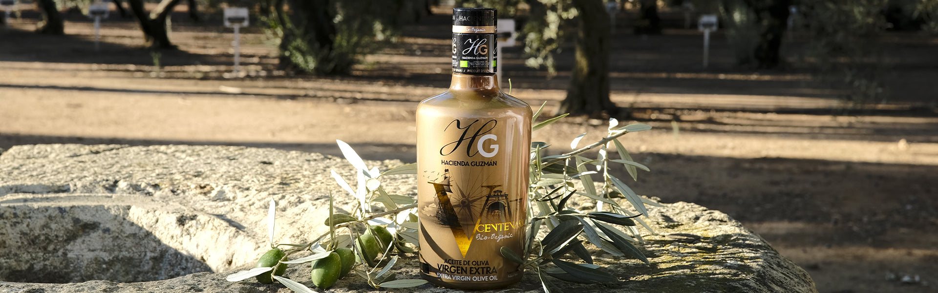 Surge así HG V Centenario, un aceite de oliva virgen extra pensado para satisfacer a los paladares más exigentes. Se trata de un coupage elaborado a partir de una selección de las mejores variedades de aceituna de nuestra finca de La Rinconada (Sevilla), que lo convierten en el complemento perfecto para cualquier experiencia gastronómica. Ya sean aliños, verduras y carnes, como pescados y pastas, su armonía redondeará cualquier plato.