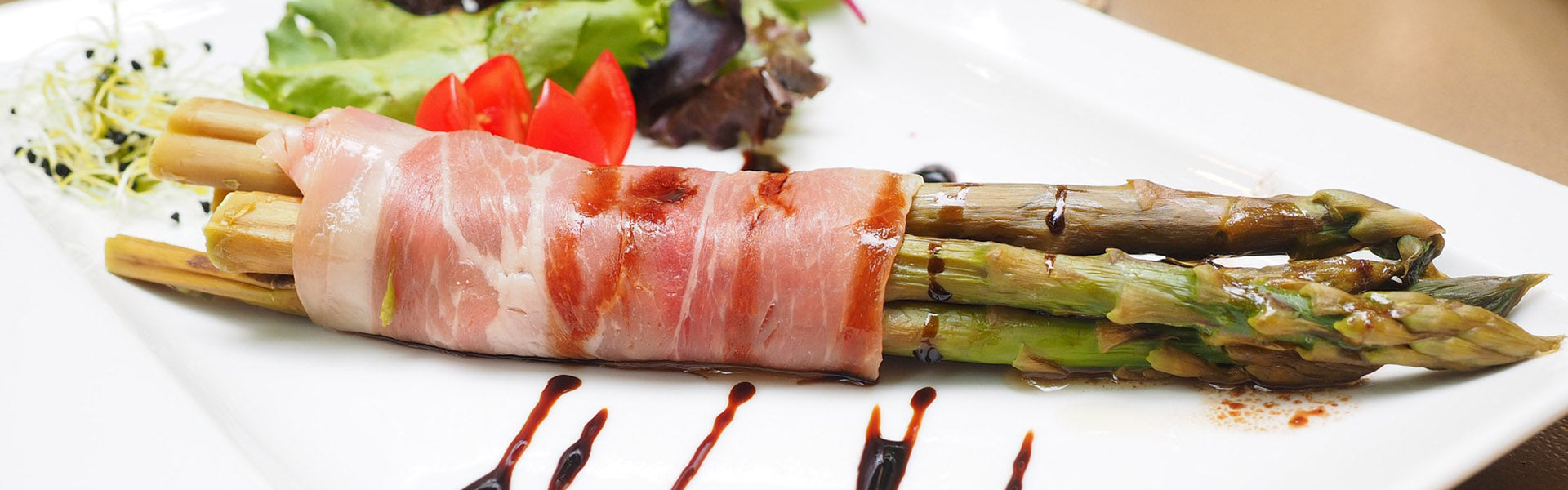 - Emplatado horizontal: en este caso, la idea es disponer los elementos en diferentes líneas horizontales. Podrías, por ejemplo, realizar una raya de salsa, colocar más arriba una tira de carne y rematar en la parte superior con una hilera de guarnición. Eso sí, si te gusta este diseño, elige un plato cuadrado o rectangular en lugar de redondo.