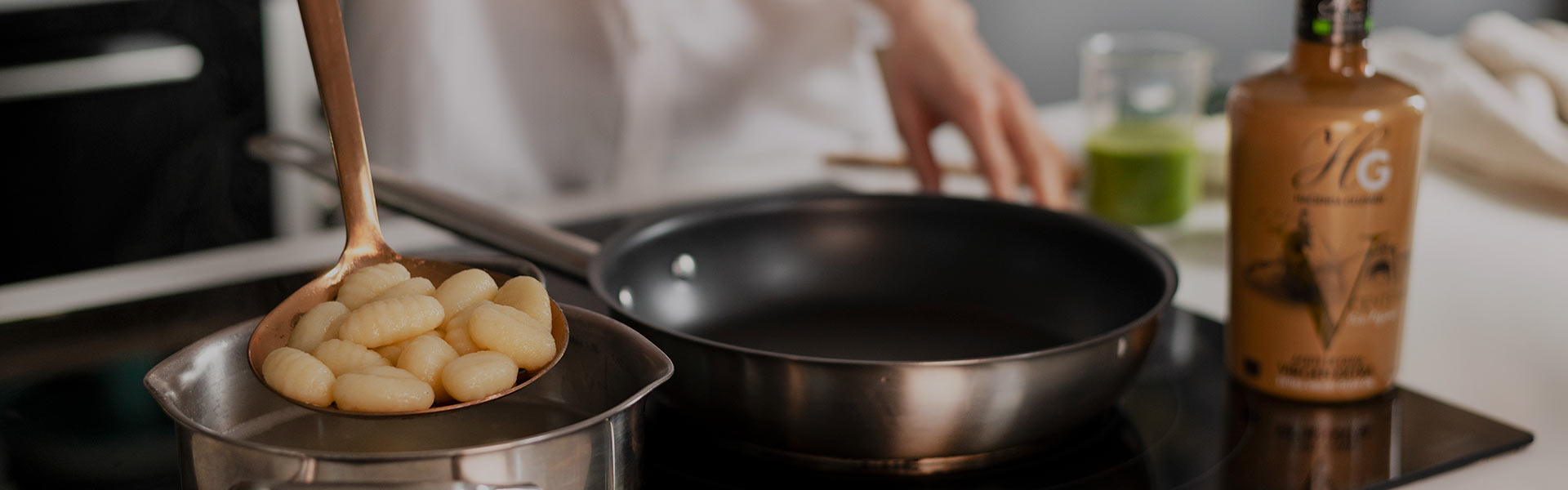 Italia es el país de referencia para los apasionados de la pasta y hoy nos trasladamos al corazón de este país con esta receta fácil de ñoquis de calabaza con salsa pesto. Se trata de una elaboración muy sencilla y rápida de hacer, que será la opción perfecta en cenas especiales y momentos únicos. Y unas gotas de nuestro Aceite de Oliva Virgen Extra Hacienda Guzmán V Centenario harán que sea inolvidable.