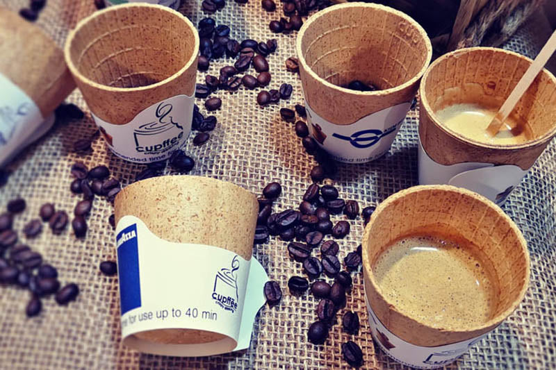 En esta misma línea de trabajo para decir adiós a las botellas de plástico surge Cupffee. La dinámica es similar a los conos de helado: ¿por qué usar plástico cuando puedes convertir las tazas en suculentos vasos de galleta?