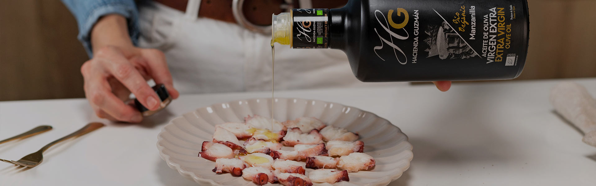As you will see, it is a very easy recipe to prepare, delivering spectacular flavor. Make sure to note down the ingredients and steps carefully so you don’t miss anything. You will discover a new way to enjoy octopus carpaccio that will become your favorite, always with our Hacienda Guzmán Manzanilla Extra Virgin Olive Oil.