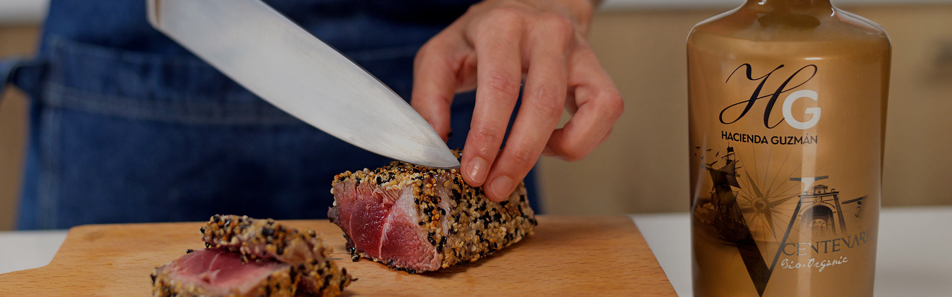 We hope you lose your hesitancy to make oriental recipes, with this tuna tataki recipe with ourV Centenario Hacienda Guzmán Extra Virgin Olive Oil. It requires more care than skill, so we encourage you to experience its flavour.