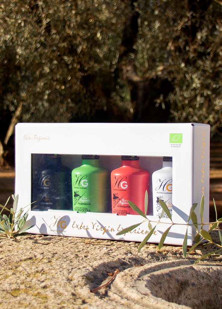 Enjoy the most Premium extra virgin olive oil with the Hacienda Guzmán range. Our case contains four 250 ml-bottles, each one numbered and carefully produced, making it a unique quality-over-quantity product.