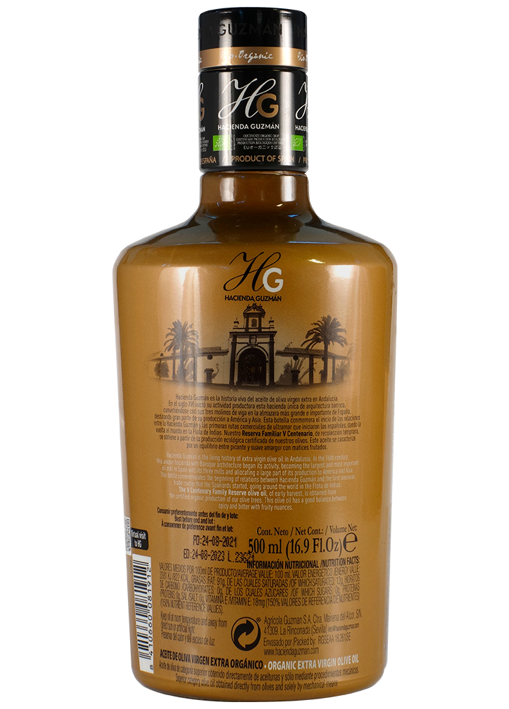 This premium olive oil belongs to a limited and exclusive edition that is launched with the start of the new harvest, to celebrate the 500 years of Hacienda Guzmán's olive oil tradition. This olive oil captures the essence of the brand: tradition and artisan character in a bottle that was designed exclusively for the occasion.